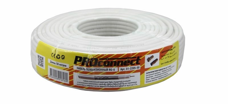 | PROconnect | 01220550 | Кабель коаксиальный PROconnect RG-6U, 75 Ом, CCS/Al/Al, 48%, бухта 50 м, белый | ||