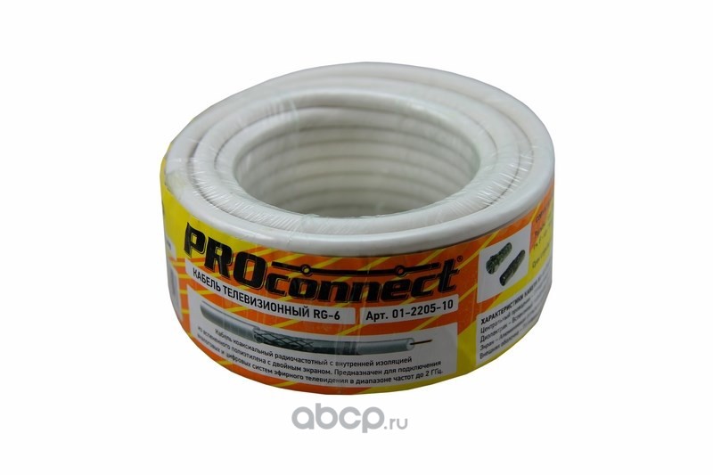 | PROconnect | 01220510 | Кабель коаксиальный PROconnect RG-6U, 75 Ом, CCS/Al/Al, 48%, бухта 10 м, белый | ||