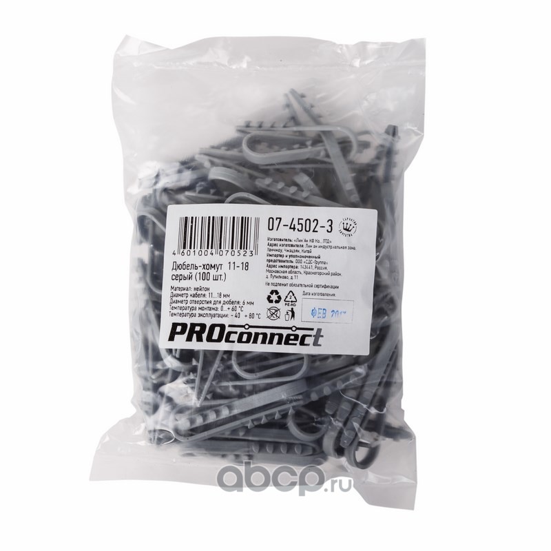 | PROconnect | 0745023 | Дюбель-хомут нейлоновый PROconnect 11-18 мм, серый, упаковка 100 шт. | ||