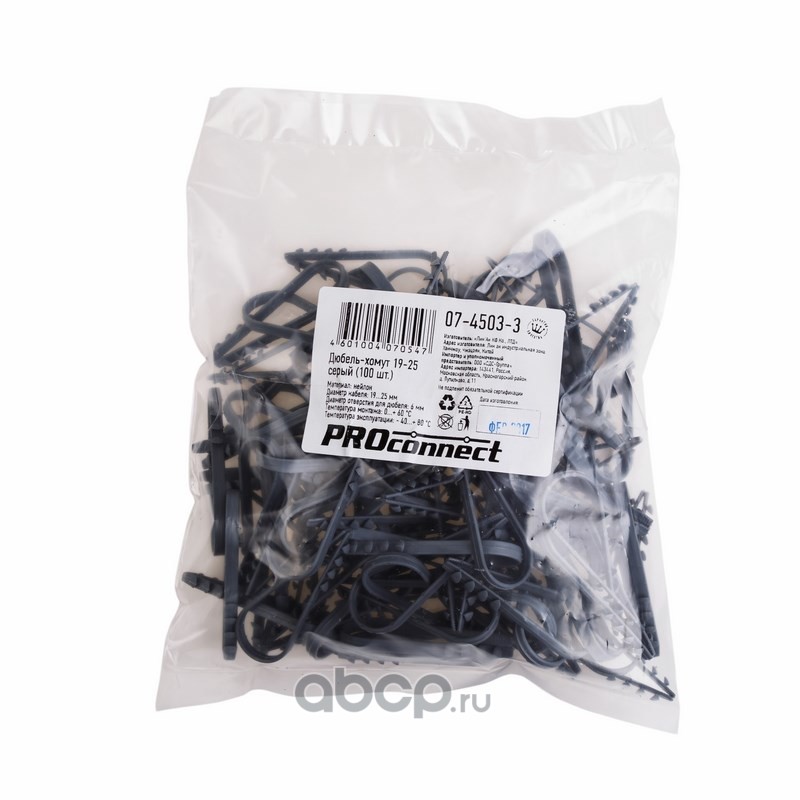 | PROconnect | 0745033 | Дюбель-хомут нейлоновый PROconnect 19-25 мм, серый, упаковка 100 шт. | ||