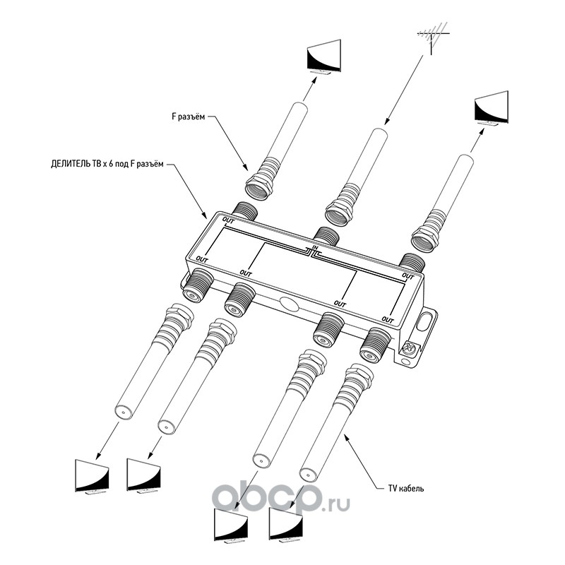 | PROconnect | 056024 | ДЕЛИТЕЛЬ ТВ х 6 под F разъём 5-1000 МГц PROCONNECT |