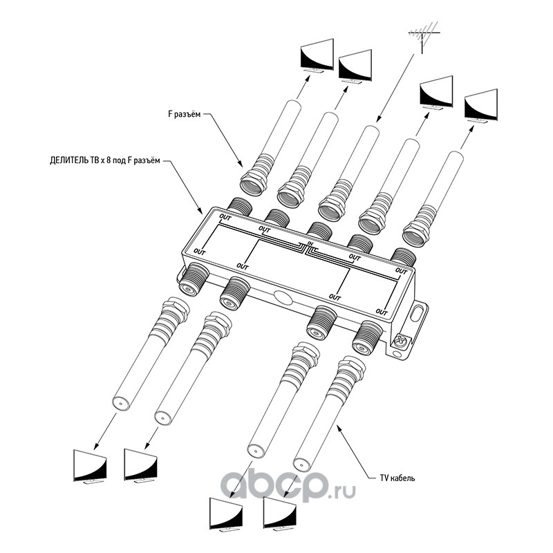 | PROconnect | 056025 | ДЕЛИТЕЛЬ ТВ х 8 под F разъём 5-1000 МГц PROCONNECT | ||