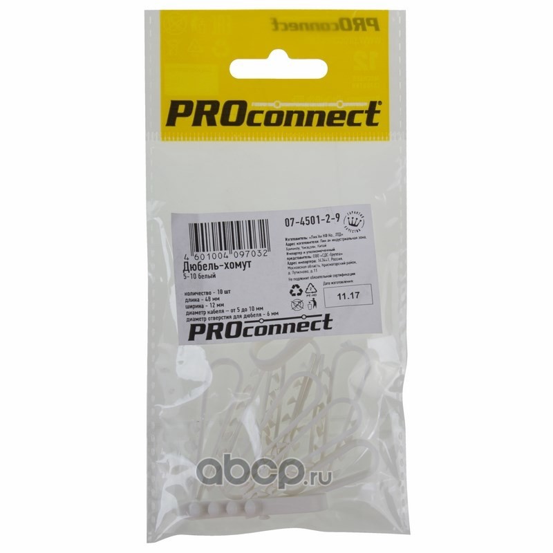 | PROconnect | 0746119 | Дюбель-хомут PROconnect 5-10, белый, прямоугольный, 10 шт. | ||