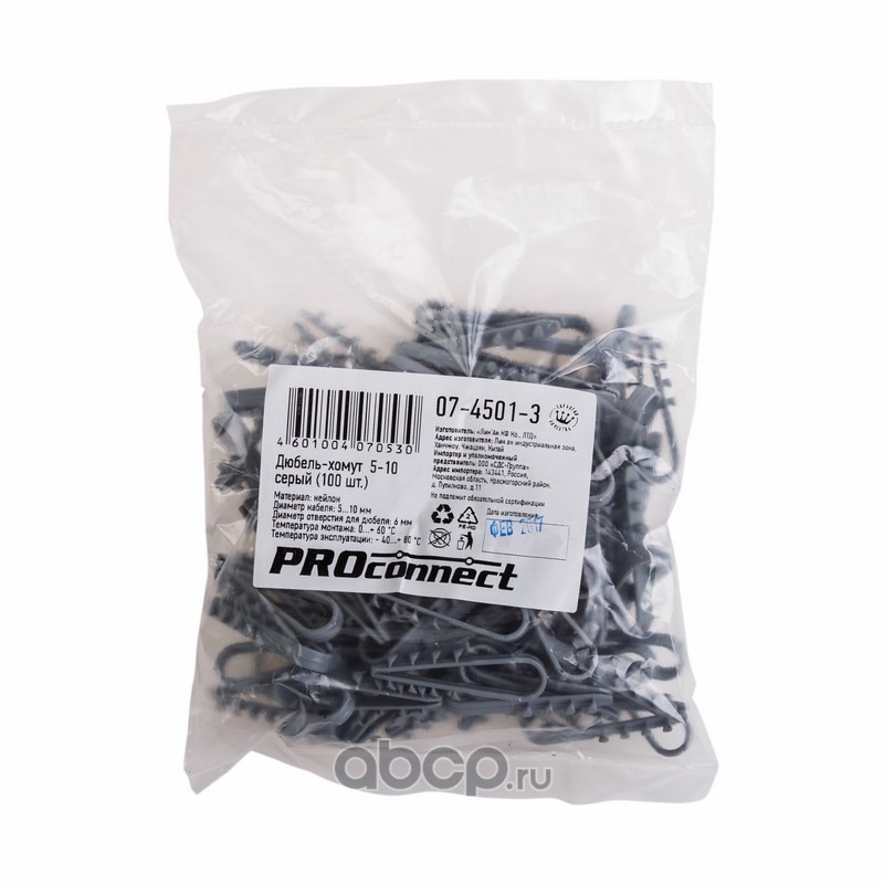| PROconnect | 0745013 | Дюбель-хомут нейлоновый PROconnect 5-10 мм, серый, упаковка 100 шт. | ||