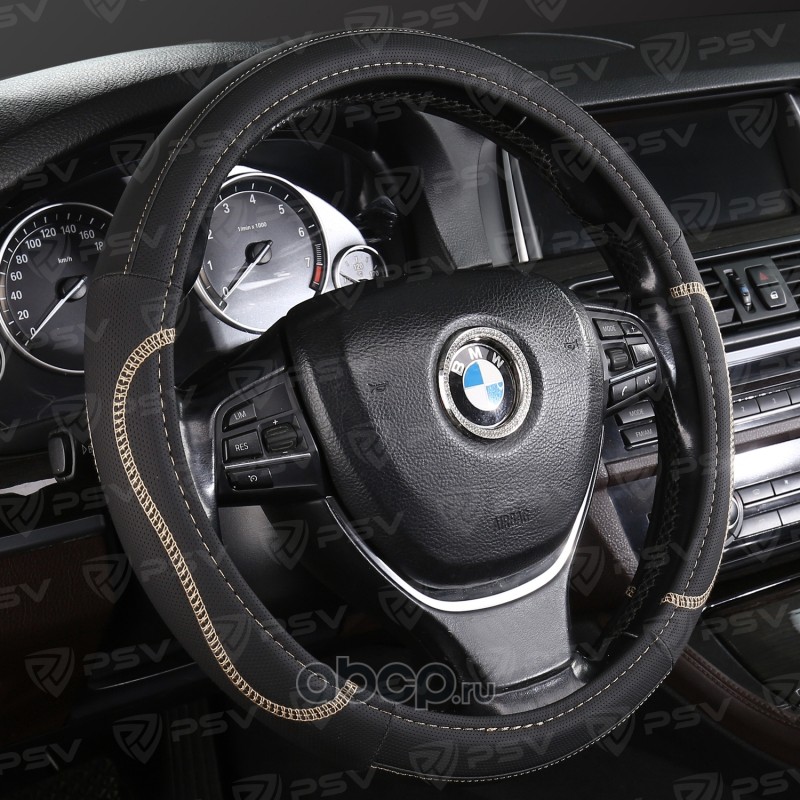 Чехол на руль оплетка ARDOR черный/отстрочка бежевая, размер M 37-39 см