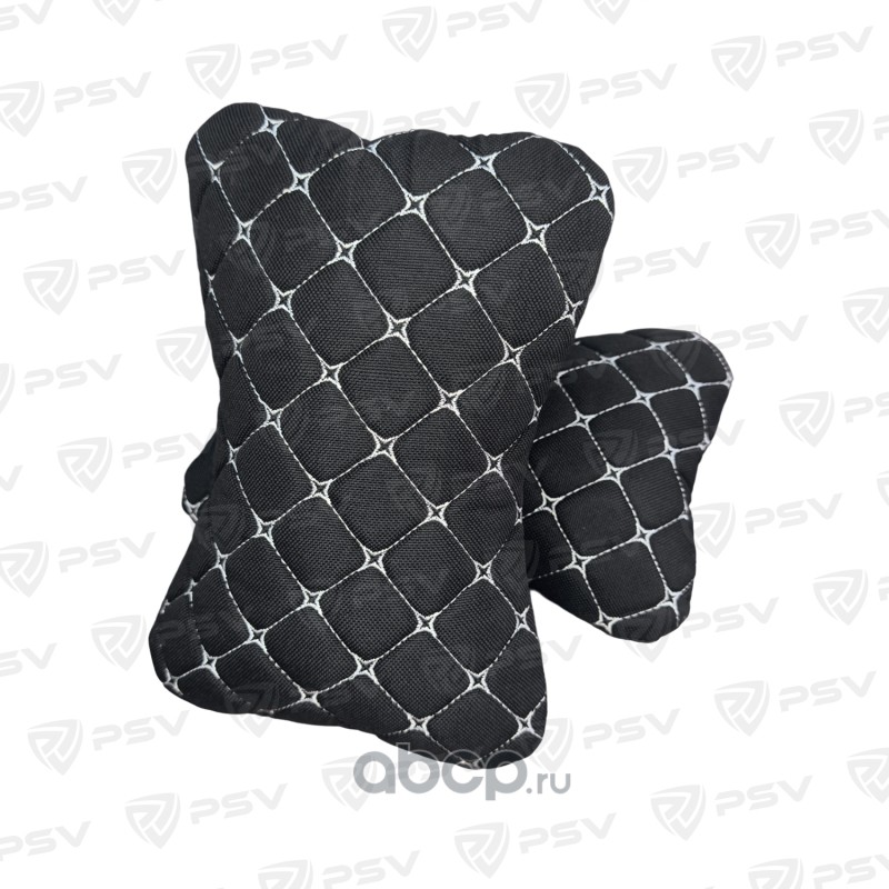 Подушка автомобильная в машину на подголовник PSV Drap (Черный/Отстрочка Черная), драп, 2 штуки