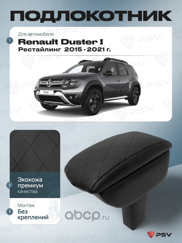 Подлокотник PSV для Renault Duster 2015-2021 г. - Рестайлинг, отстрочка черная