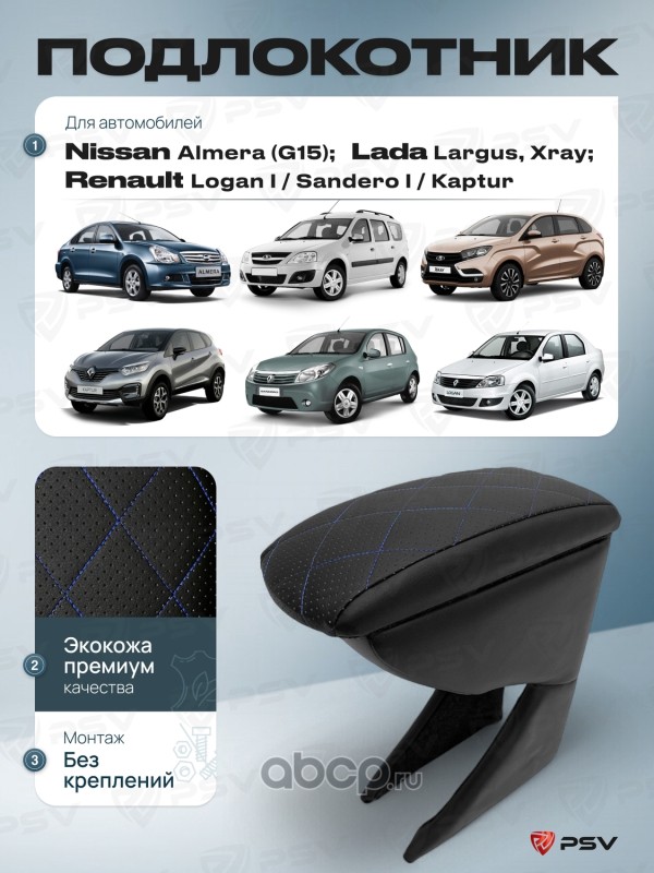 Подлокотник PSV для Nissan Almera (G15); Renault Logan I/Sandero I/Kaptur; Lada Largus, Xray - отстрочка синяя
