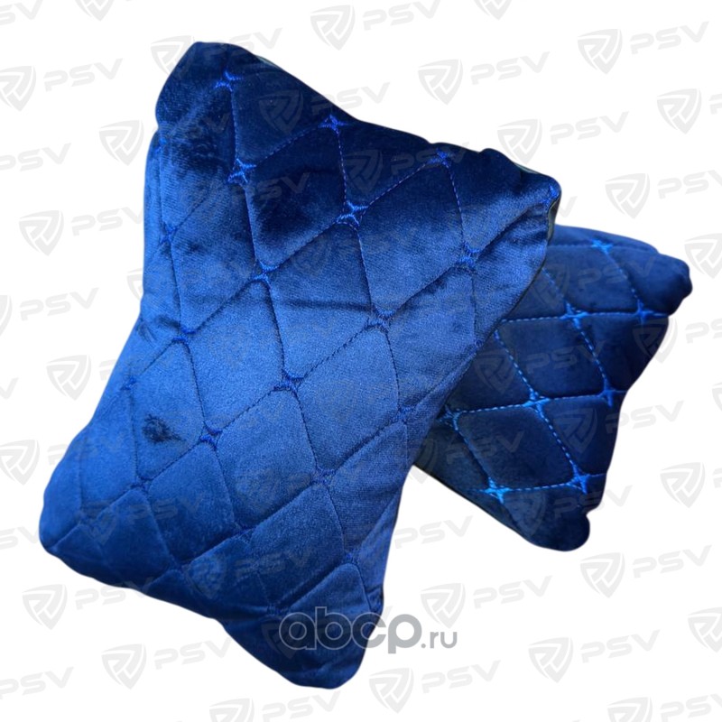 Подушка автомобильная в машину на подголовник PSV Velvet (Черный/Отстрочка Белая), вельвет, 2 штуки