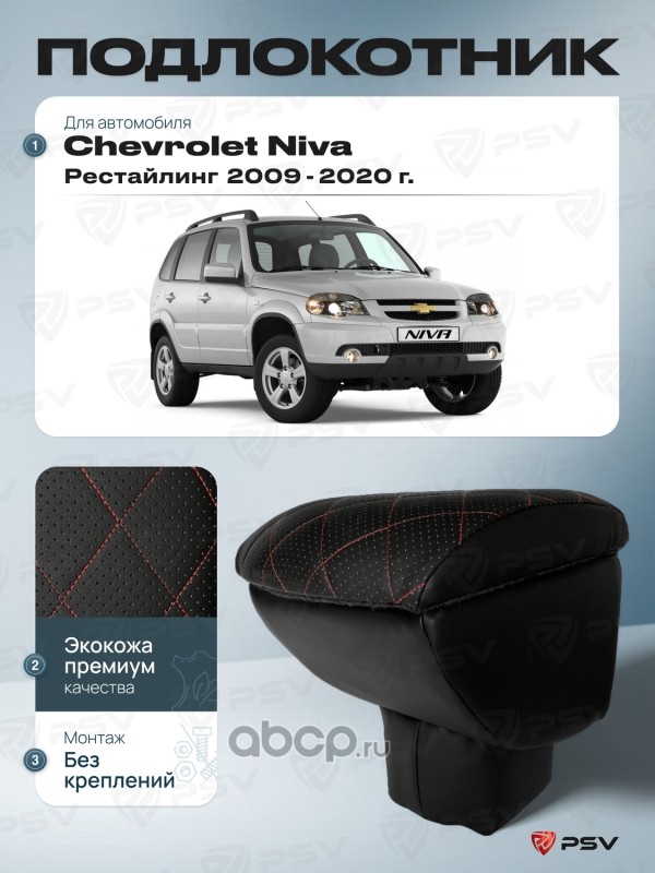 Подлокотник PSV для Chevrolet Niva 2009-2020 г. Рестайлинг / Lada Niva Travel 2020-> отстрочка красная