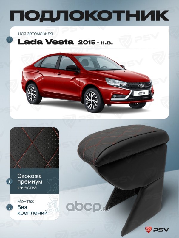 Подлокотник PSV для Lada Vesta 2015-> отстрочка красная