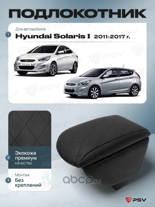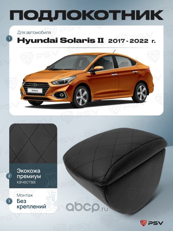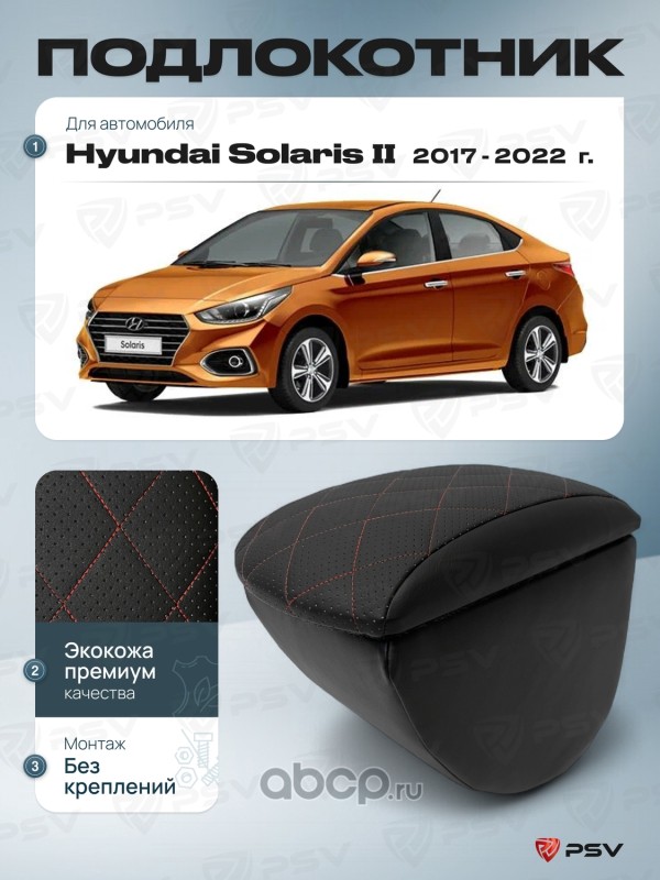 Подлокотник PSV для Hyundai Solaris II 2017-2022 г. - с креплением, отстрочка черная