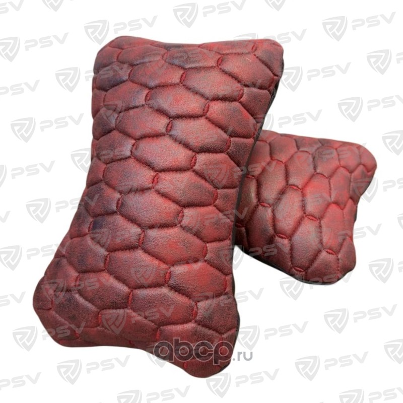 Подушка автомобильная в машину на подголовник PSV Skin (Черно-Красный), мокрая кожа, 2 штуки
