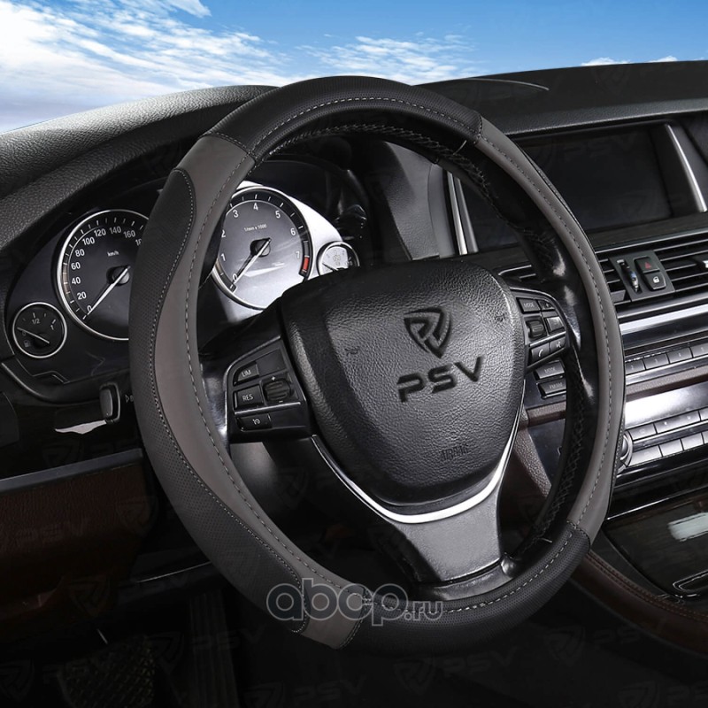 Чехол на руль оплетка LEADER черно-серый, размер M 37-39 см