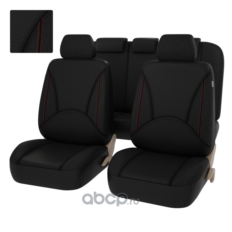 Чехлы в машину на сиденья универсальные весь салон PSV Imperial Next (Черный/Отстрочка красная), экокожа + жаккард