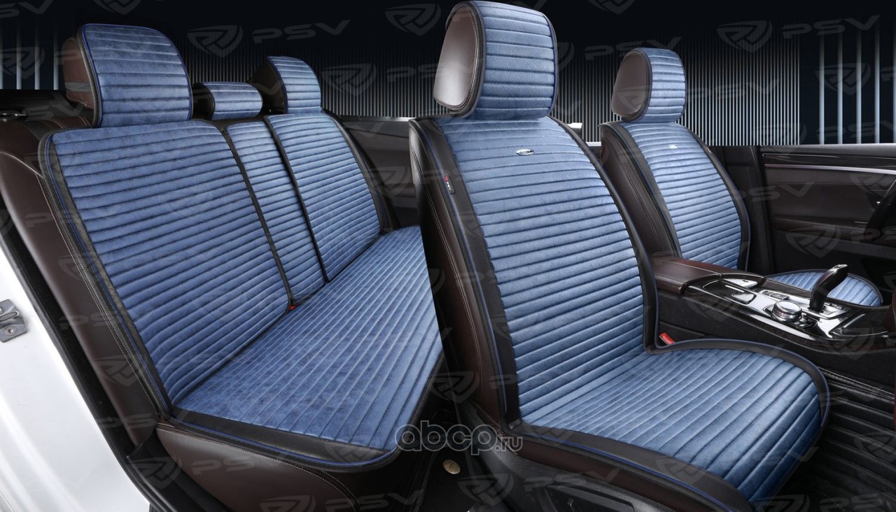 Накидки в машину чехлы универсальные PSV Bliss PRO Skin (Черно-Синий), комплект на весь салон, мокрая кожа