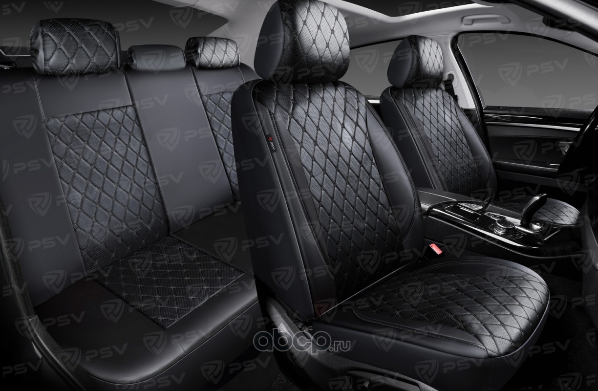 Чехлы в машину на сиденья универсальные весь салон PSV Graf Next (Черный/Ромб черный/отстрочка черная)