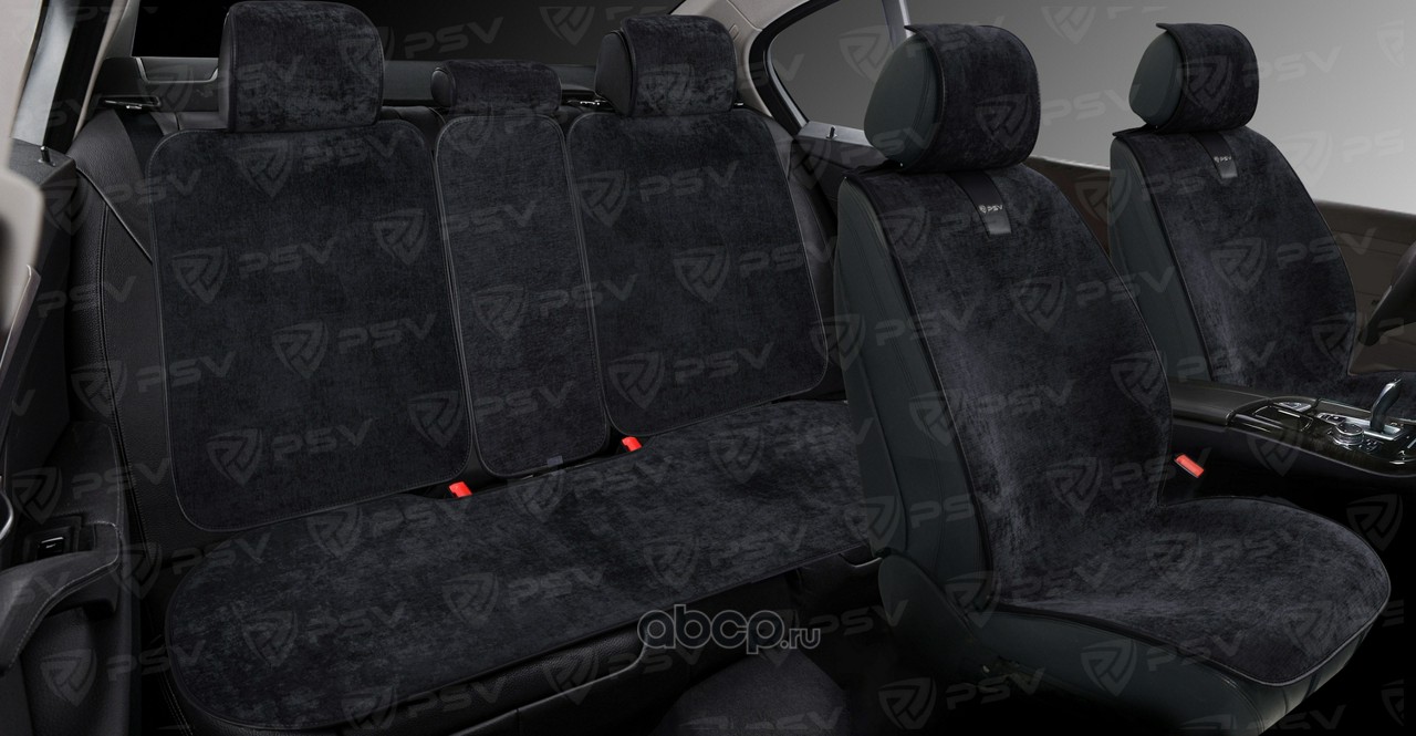 Накидки в машину универсальные 3D PSV Lint 2 FRONT (Черный/Отстрочка белая), на передние сиденья