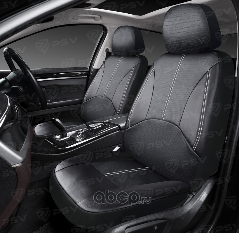 Чехлы в машину на передние сиденья универсальные PSV Imperial Next 2 FRONT (Черный/отстрочка белая), экокожа
