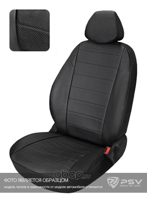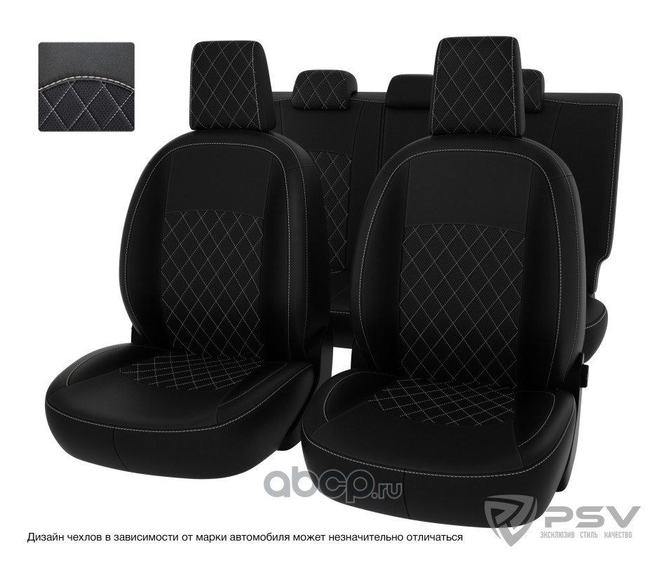Чехлы в машину PSV для Lada Granta/Лада Гранта I 2011-2018 г. - (Норма/Стандарт), 5 подголовников, сплошная спинка, черный/отстрочка черная, экокожа Оригинал