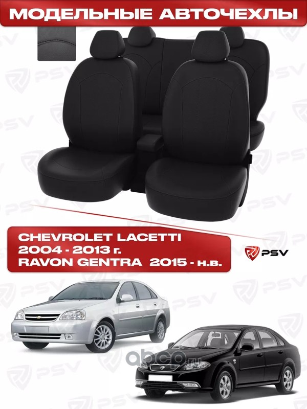 Чехлы в машину PSV для Chevrolet Lacetti/Шевроле Лачети 2004-2013/Ravon Gentra 2015-> черный/отстрочка черная, экокожа Оригинал