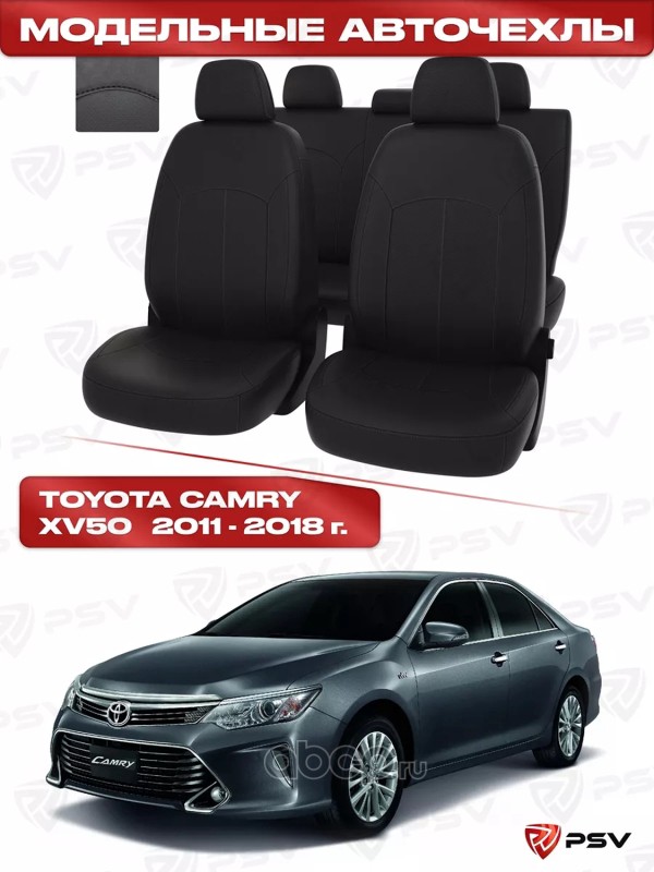 Чехлы Toyota Camry XV50 2011-2018 г. - черный/отстрочка черная, экокожа ""Оригинал
