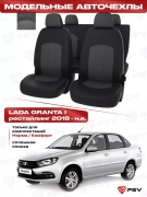 Чехлы в машину PSV для Lada Granta/Лада Гранта I 2018-> Рестайлинг, (Норма/Комфорт), сплошная спинка, черно-серая экокожа Оригинал