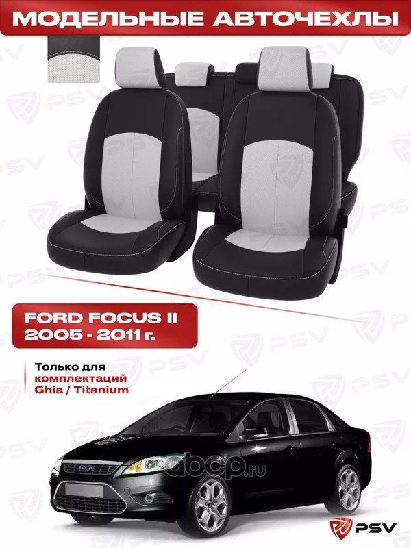 | PSV | 125423 | Чехлы в машину PSV для Ford Focus/Форд Фокус II 2005-2011 г. - (Ghia, Titanium) черно-белая экокожа "Оригинал | ||