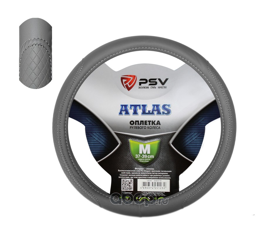 Чехол на руль оплетка ATLAS серый, размер M 37-39 см