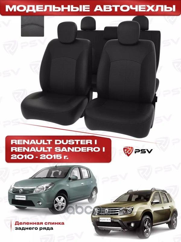 Чехлы в машину PSV для Renault Duster/Sandero I 2010-2015 г. - деленная спинка, черный/отстрочка черная, экокожа "Оригинал