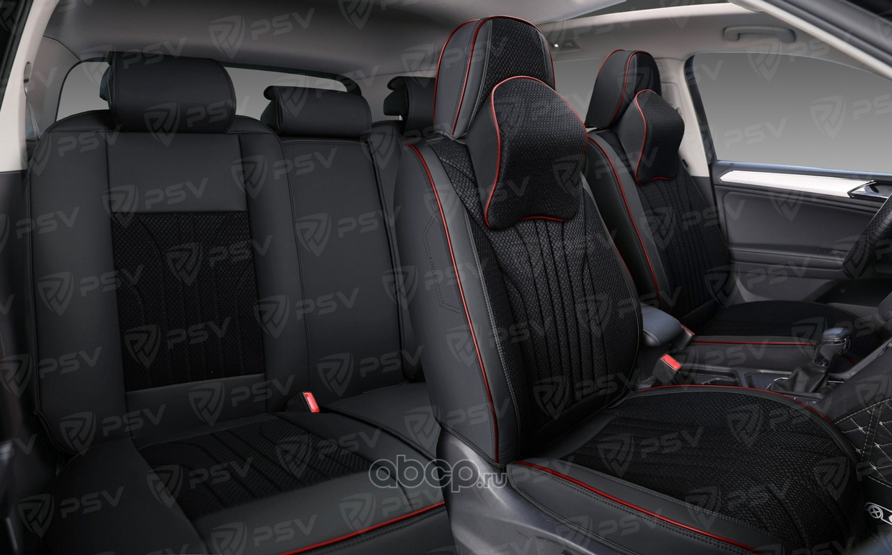 Накидки чехлы на сиденья в машину автомобильные весь салон 5D PSV Forward (Черный/Кант красный), экокожа + текстиль