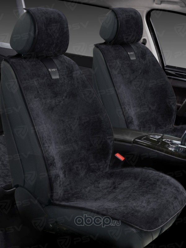 Накидки на передние сиденья в машину автомобильные универсальные на весь салон льняные PSV Len Sneg 2 FRONT (Черный)