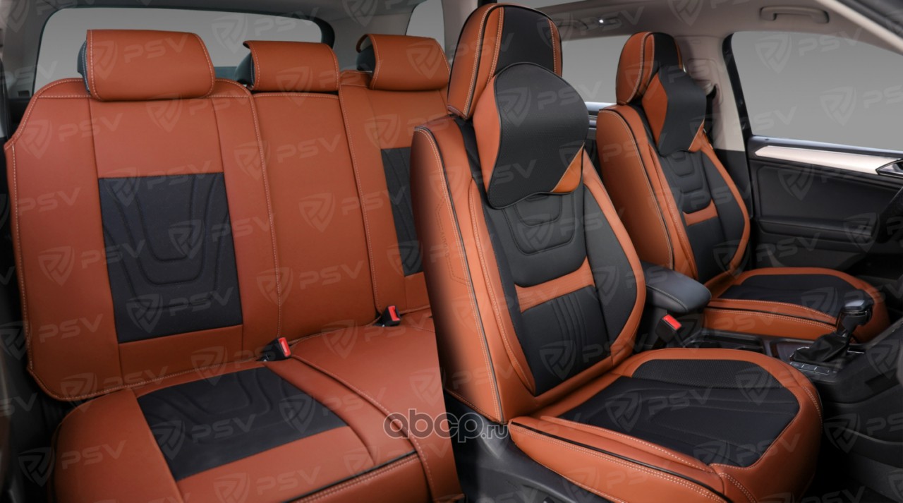 Накидки на сиденья в машину автомобильные весь салон 5D PSV Genesis (Коричнево-Черный), комплект на весь салон, экокожа