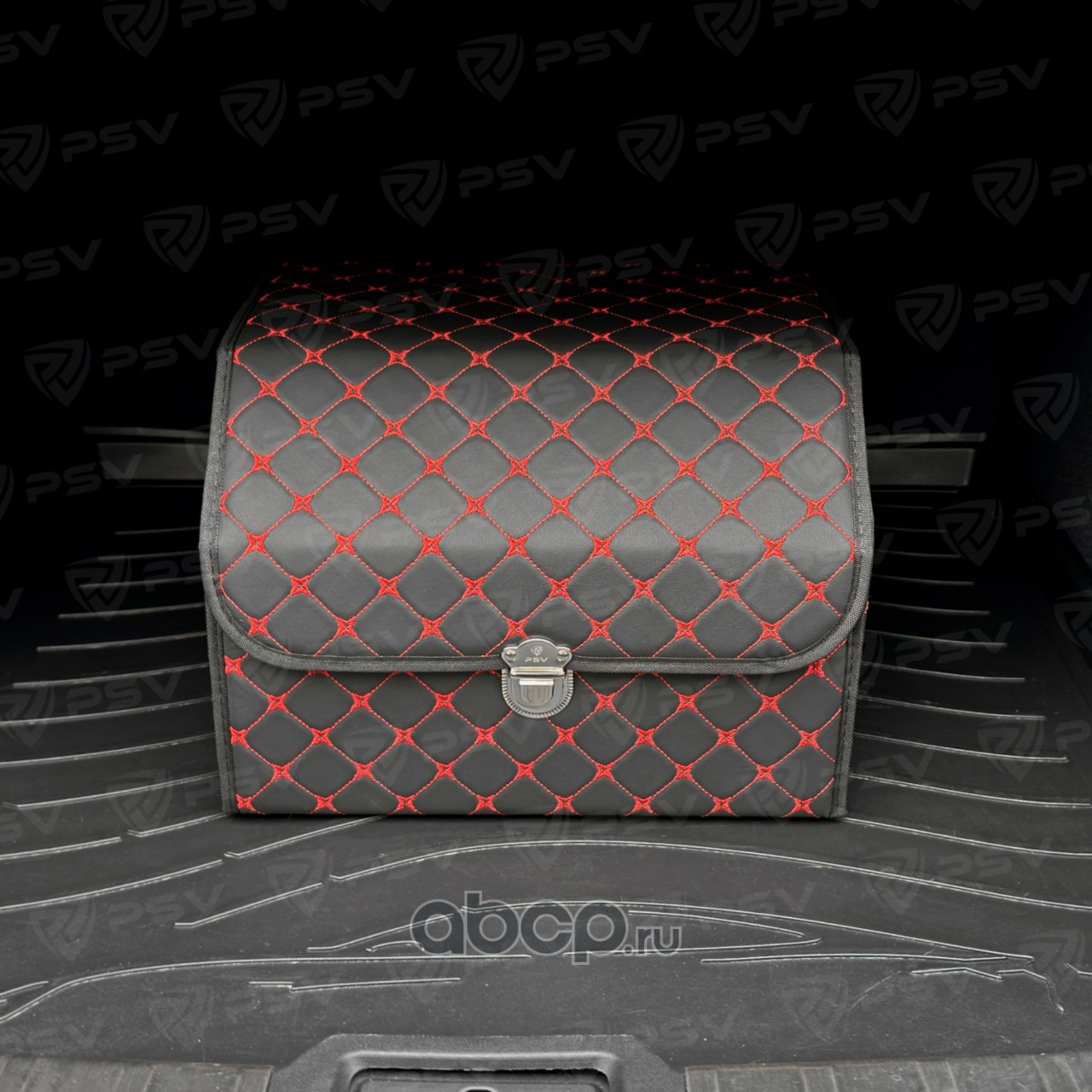 Универсальный органайзер в багажник автомобиля PSV 3D Zvezda Plastic (30х30х40 см) красная строчка, экокожа (пластик) "M
