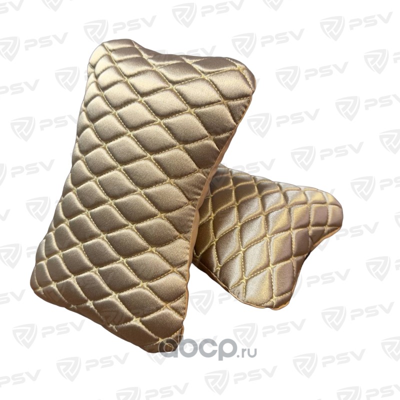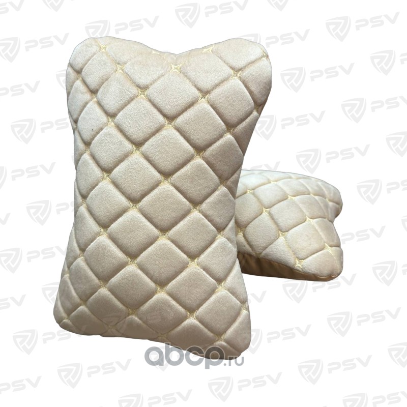 Подушка автомобильная в машину на подголовник PSV Velur (Бежевый/Отстрочка Бежевая), велюр, 2 штуки