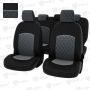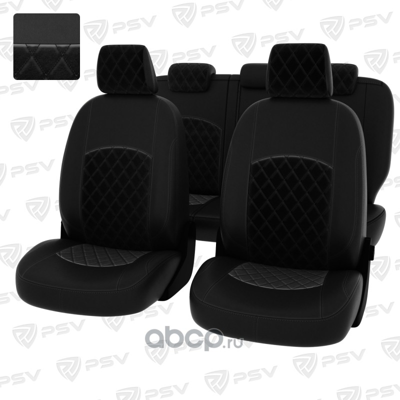 Чехлы в машину PSV для Ford Focus/Форд Фокус II 2005-2011 г. - (Ghia, Titanium) РОМБ/ отстрочка чёрная, черная экокожа + черный велюр "Оригинал