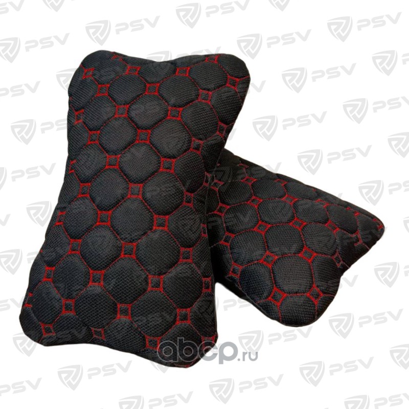 Подушка автомобильная в машину на подголовник PSV Twid (Черный/Отстрочка Красная), твид, 2 штуки