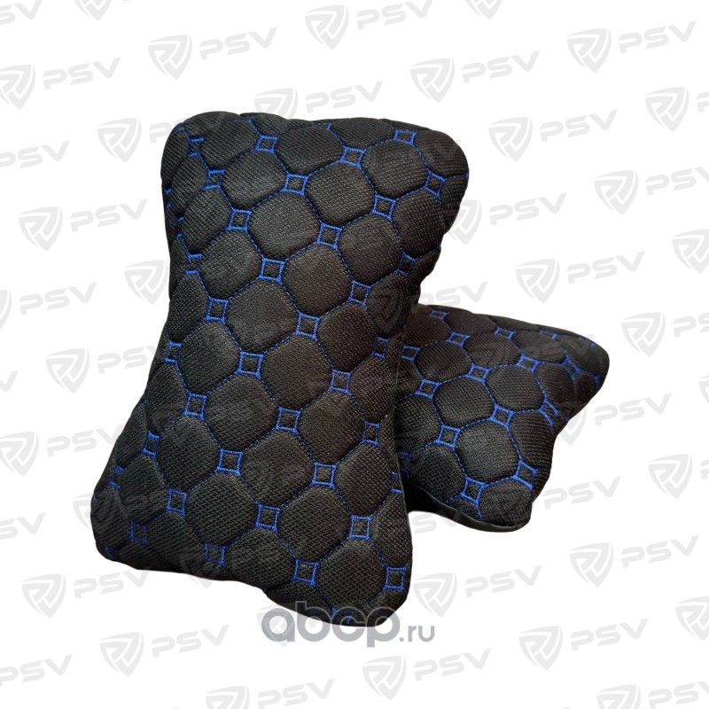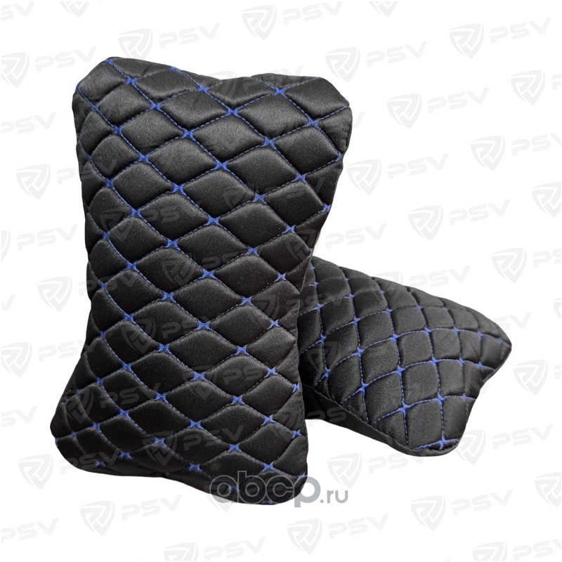Подушка автомобильная в машину на подголовник PSV Twid (Черный/Отстрочка Синяя), твид, 2 штуки