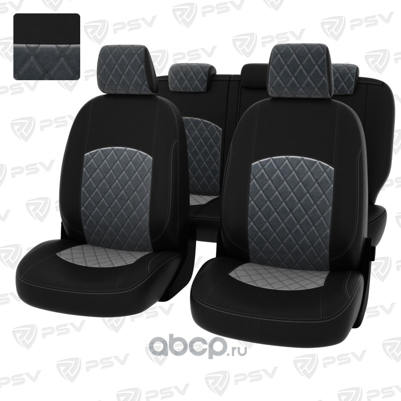 Чехлы в машину PSV для Ford Focus/Форд Фокус II 2005-2011 г. - (Ghia, Titanium) РОМБ/ отстрочка серая, черная экокожа + серый велюр "Оригинал