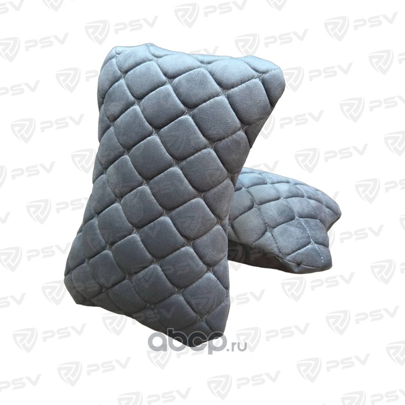 Подушка автомобильная в машину на подголовник PSV Velur (Серый/Отстрочка Серая), велюр, 2 штуки