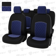 Чехлы в машину PSV для Ford Focus/Форд Фокус II 2005-2011 г. - (Ghia, Titanium) РОМБ/ отстрочка синяя, черная экокожа + синий велюр "Оригинал