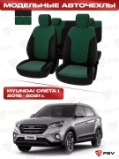 Чехлы в машину PSV для Hyundai Creta I 2016-2021 г. - РОМБ/ отстрочка зеленая, черная экокожа + зеленый велюр "Оригинал