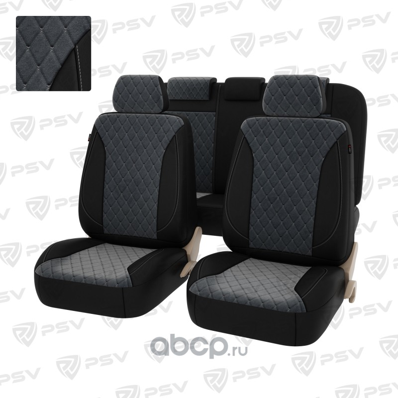 Накидки чехлы на сиденья в машину автомобильные весь салон 5D PSV Leader (Черно-серый), экокожа + алькантара