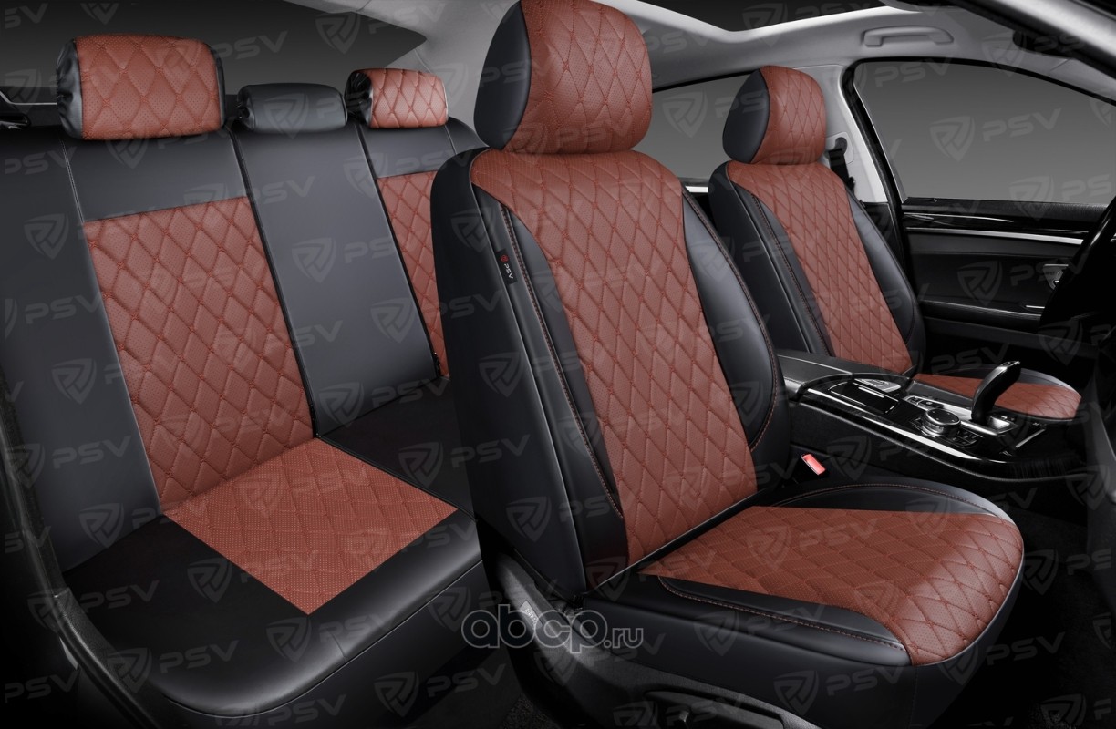 Накидки чехлы на сиденья в машину автомобильные весь салон 5D PSV Sport (Бежево-Т.Коричневый), экокожа + текстиль