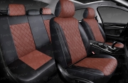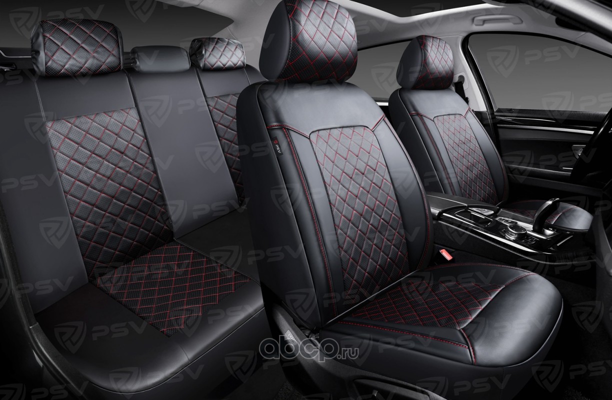 Чехлы в машину на сиденья универсальные весь салон PSV Elegant Next (Черный/Ромб красный/отстрочка красная),экокожа