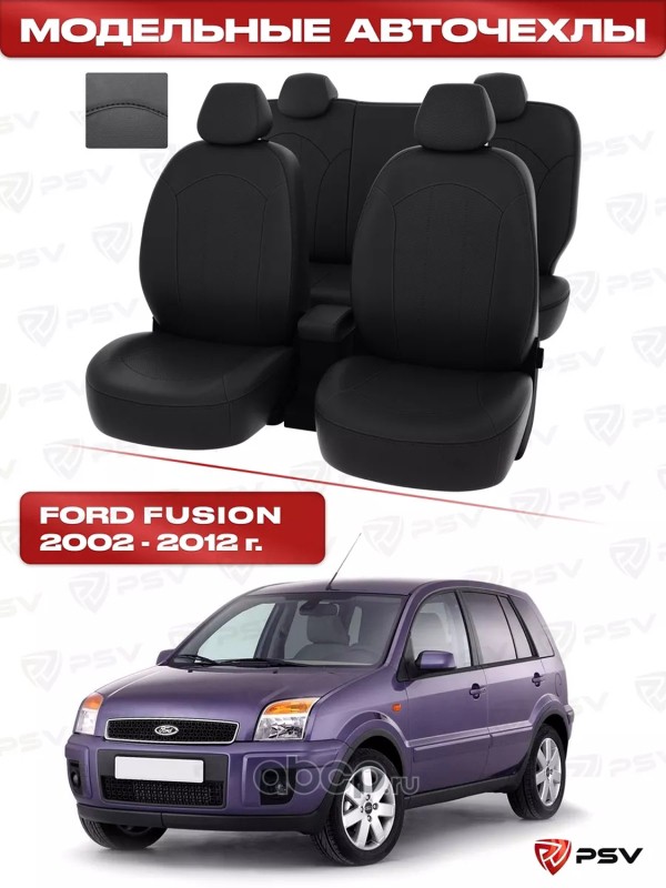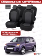 Чехлы Ford Fusion 2002-2012 г. - черный/отстрочка черная, экокожа *Оригинал*