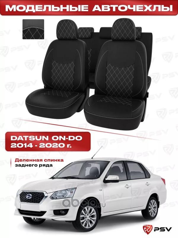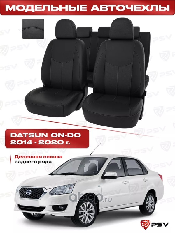 Чехлы Datsun On-Do 2014-2020 г. - деленная спинка, черный/отстрочка черная, экокожа *Оригинал*