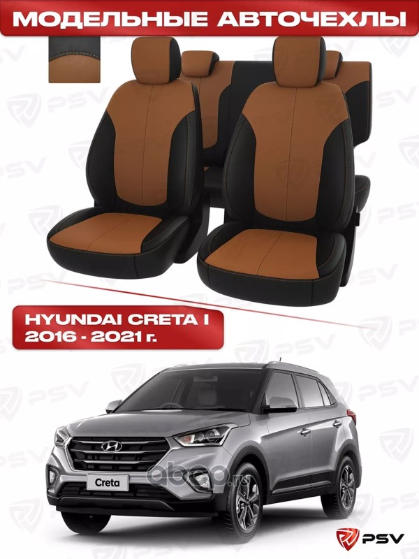 Чехлы в машину PSV для Hyundai Creta I 2016-2021 - черно-св. коричневая экокожа "Оригинал