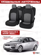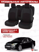 Чехлы в машину PSV для Ford Focus/Форд Фокус II 2005-2011 г. - (Trend) РОМБ/отстрочка серая, черная экокожа + серая алькантара "Оригинал