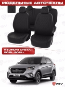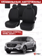 Чехлы в машину PSV для Hyundai Creta I 2016-2021 - РОМБ/отстрочка черная, черная экокожа "Статус